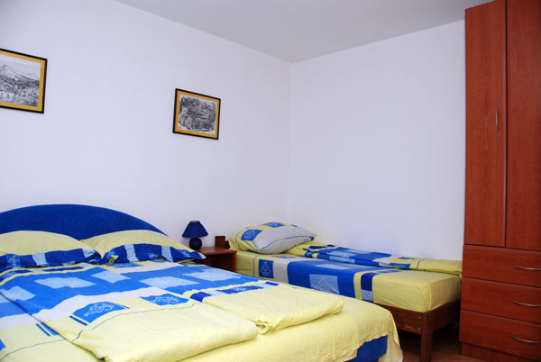 Dnevni boravak sa ležajem na razvlačenje, spavaću sobu sa francuskim i još jednim ležajem, opremljenu kuhinju, kupatilo, parking, TV sa kablovskom, wireles internet....